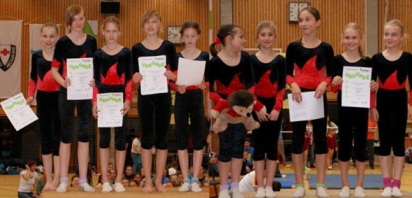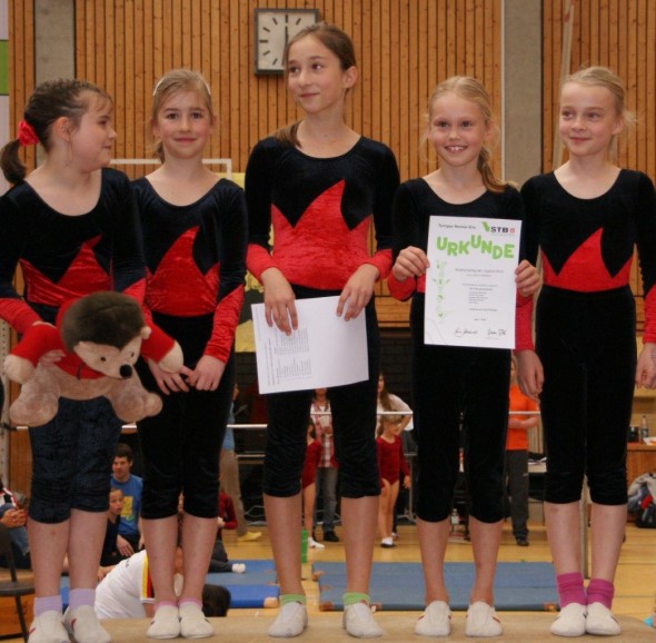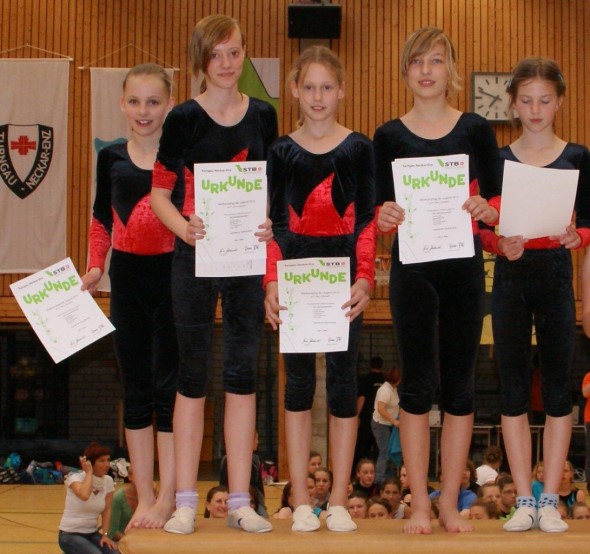 Im Pflicht Vierkampf der weiblichen Jugend C belegten Isabell Bleicher, Lena Dagenbach, Janina Hein, Svea Klein und Pia Roman mit 153,55 Punkten ebenfalls den ersten Platz.