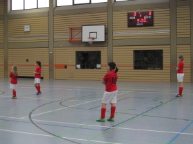 Im letzten Gruppenspiel ging es wieder mal gegen den TSV Weinsberg. Wie schon beim letzten Hallenturnier konnten wir bis zur Halbzeit gut mithalten. Aber dann zogen die Gegnerinnen das Tempo an und wir mussten uns am Ende mit einer 0:5 Niederlage zufrieden geben.