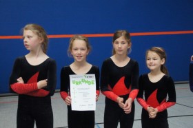 Die Turnerinnen Jara Klein, Isabell Bleicher, Lena Dagenbach und Janina Hein erturnten sich ebenfalls im Wahlwettkampf der weiblichen Jugend C Platz eins.