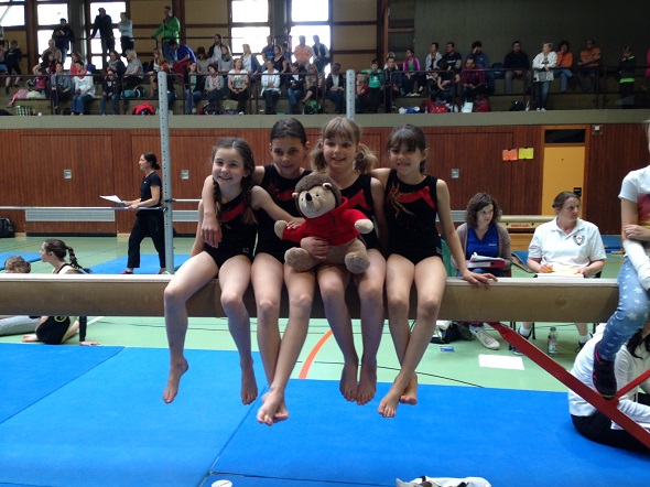 Die Jungen Marcel Schock, Simon Olescher und Florian Wessely (alle TSV)Â turnten mit Paskal Falk und Pascal Castello (TVG) in einer Wettkampfgemeinschaft. Sie belegten ebenfalls Platz eins.
