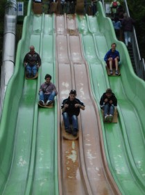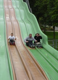 Am Sonntag, 15. Juni unternahmen die Jugendtrainer und Jugendleitung samt Familienangehörigen einen Tagesausflug, der im zweijährigen Turnus statt findet. Kurz nach 8.00 Uhr fuhren die 45 Teilnehmer mit dem Bus über die „Bodenseeautobahn" dem Schwäbischen Meer entgegen. Mit Hilfe von Vereinsjugendleiterin Antje Buch „begrüßte" Fußball-Jugendleiter Jürgen Seemüller die Gäste über das Bordmikro in Form einer Vorstellungsrunde, die schon am frühen Morgen die Lachmuskeln der Teilnehmer strapazierte. Erster Stopp war der schöne Wild- und Freizeitpark in Allensbach, wo zunächst das mitgebrachte Vesper samt dazugehörigen Getränken bei einer zünftigen Brotzeit verzehrt wurde. Glück hatte man auch mit dem Wetter, da der angesagte Regen jedenfalls zunächst ausblieb. Viel Spaß hatten die TSVler dann im Park, sei es bei einer Falknereivorführung, den langen Rutschbahnen für groß und klein oder der Schussfahrt mit dem „Rothaus-Jet" ins Wasser. Eine Fahrt mit dem „Bähnle" (bei der auch der B-Jugend-Meister aus Kleinsachsenheim extra begrüßt wurde) und ein Spaziergang vorbei am großzügigen Bärengehege schlossen sich an, bevor die Fahrt dann weiter am Unteren See entlang nach Konstanz ging. In Konstanz setzte dann kaum dass wir angekommen waren der Regen ein, so dass es ein relativ schneller Spaziergang an der Uferpromenade wurde, wobei man auch einen Abstecher in die Schweiz machte. Sea Life-Center oder Einkaufscenter hießen die Alternativen, bevor man dann doch noch etwas die Konstanzer Altstadt erkunden konnte oder am Hafen ein Café aufsuchte. Mit dem Bus ging es dann in eine schöne Gaststätte, direkt am breiten Rheinufer gelegen, wo man sich vor der Heimreise noch ausgiebig stärken konnte. Auf der Heimfahrt bekam das Jugendleitergremium für die geleistete Arbeit noch eine sehr schöne Anerkennung, wofür wir uns bei allen nochmals herzlich bedanken möchten. Dank auch unserem langjährigen Busfahrer Günther, der uns gewohnt wieder sicher nach Hause brachte.