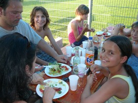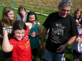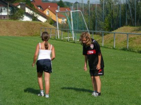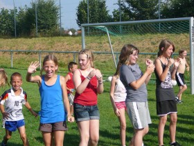 Was ein Fest !!! Über 30 Kinder und über 30 Erwachsene feierten den Saisonausklang der E-Juniorinnen. Wir waren begeistert. Fast alle Spielerinnen mit Eltern und Geschwistern waren da. Dazu noch Willi Oetinger und Jürgen Seemüller, die uns sehr zur Freude der Mädchen einen Besuch abstatteten. Perfektes Wetter ( Petrus ist Fan von uns ) hat schon den Anfang gemacht. Selbstgebackene Kuchen, Fleisch, Würstchen, Salate und Getränke hoben die Stimmung an. Spiele, die von den Mädchen ( Jessica und Lea ) organisiert wurden. Gitarren-klänge, die einfach schön waren. Dazu ein GIGANTISCHES Fußballspiel, in dem Eltern und Kinder - ohne zu übertreiben - Stunden den Platz umpflügten. Was soll man sagen, die Stimmung war einfach Gigantisch. Alle hatten riesig Spaß, vor allem, als wir dann auch noch einen neuen Spieler entdeckten. Wie aus heiterem Himmel stand sie da. Groß, Blond und haute uns den Ball um die Ohren. Leider, ja leider ist sie ein klein wenig zu alt für die D-Juniorinnen. Wir hätten Sie sofort verpflichtet, gell Sylvia!!! Ein gelungener Tag und Abend. Es hat riesig Spaß gemacht, hier mit den Kids und Eltern zu feiern, auch wenn es etwas später wurde. Wir konnten hier den Eltern zeigen, was für ein Riesenteam hier entstanden ist. Miguel konnte dann anhand einer kleinen Statistik auch aufzeigen, wie die Platzierungsentwicklung des Kaders war. Auch hier konnte die tolle Arbeit bestätigt werden.