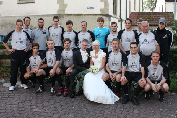 Die komplette Abteilung FuĂźball wĂĽnscht Jens und Melli alles Gute fĂĽr die gemeinsame Zukunft!Â